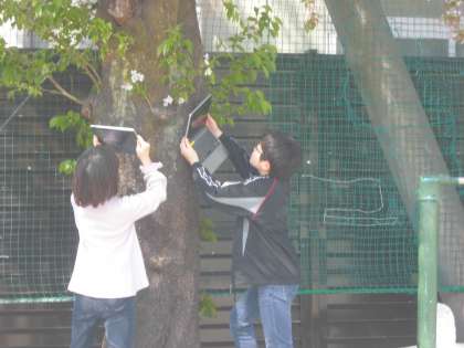 図画工作では、「絵の具スケッチ」の学習をしました。「きれいだな、いいな」と感じた春をGIGA端末で写真を撮りました。