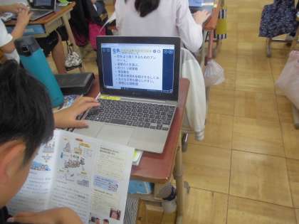 6年生 社会 公開日 2025/04/24 更新日 2025/04/24 6年生のページ 社会科では「わたしたちのくらしと日本国憲法」の学習をしています。今日は、「国民主権」の考えが、市や国の取り組みにどのように反映されているのかについて予想し、調べました。