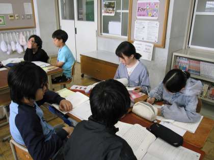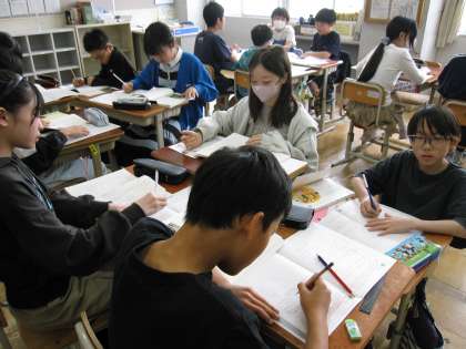 国語科の学習では、物語文「帰り道」を学習しました。班で意見を持ち寄って話し合いました。