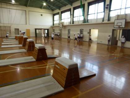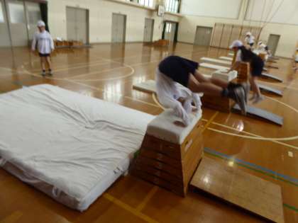 とび箱が上手になってきました。「ねらい2」として少し頑張ればできそうな技にも挑戦しています。