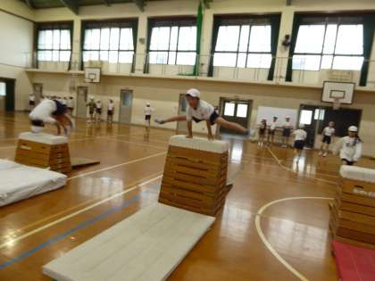 とび箱の学習も終盤に近付いています。くり返し練習したことで出来る技も増えてきています。