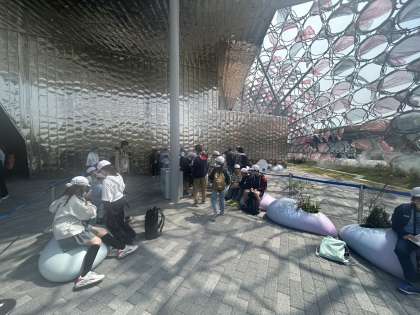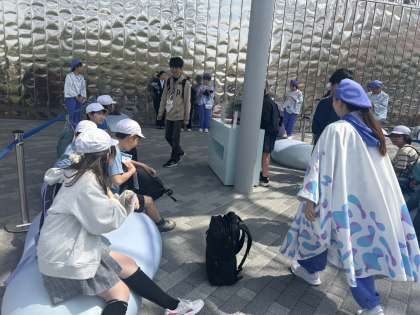 各グループに分かれて、パナソニックのパビリオン「ノモの国」の見学をしています。