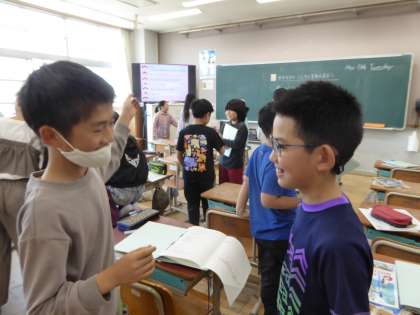 5年生 外国語科〜Unit 1〜 公開日 2025/05/14 更新日 2025/05/14 5年生のページ 友だち同士で英語を使って自己紹介しました。好きな教科や食べ物、スペルなど多くのことを交流していました。