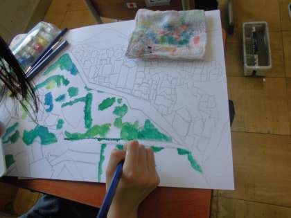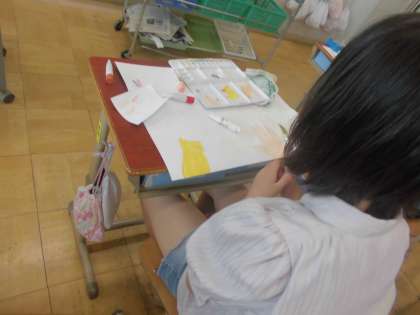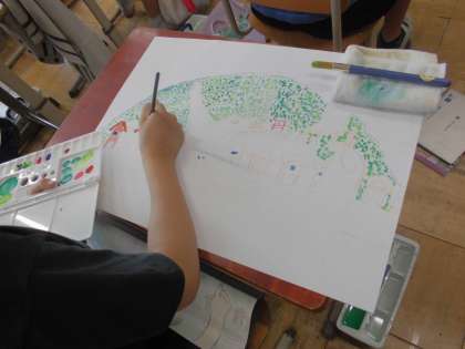 図画工作では、「わたしの大切な風景」の学習をしています。何気ない日常や、心に残っている場面を、自分の見方で気持ちを重ねて切り取って描いています。