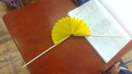 丸く開く扇を作って、扇を開いてできる形と角の大きさについて調べました。