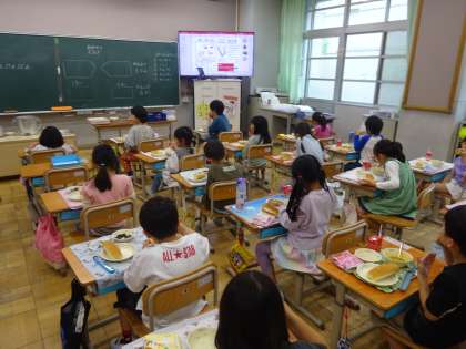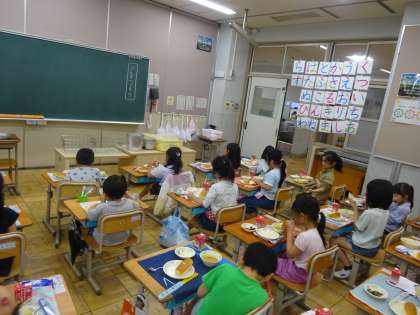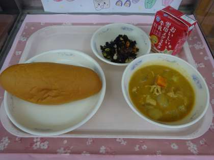 今日は、カレー味のシチューでした。「パンとよく合っていて、美味しい!」と言っている子がたくさんいました。