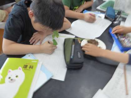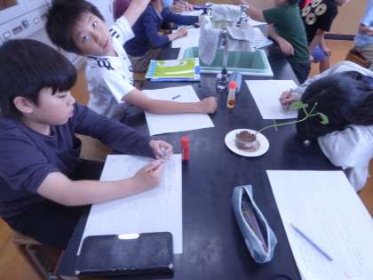 植物の発芽を学習しています。発芽して植物が成長してく過程を学習しました。