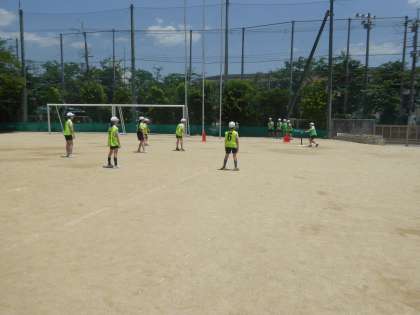 青空の中、ベースボールの学習に取り組みました。暑い中でしたがみんな頑張って打って、走って頑張っています。