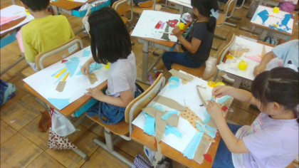 包装紙や画用紙をやぶいてできた形が何に見えるか考えました。