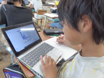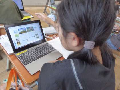 沖縄県ではあたたかい気候をいかしてどのような農業をしているのだろう。デジタル教科書を使いながら調べていきました。