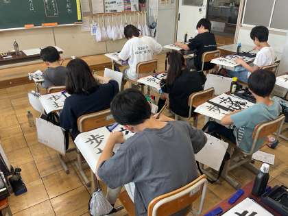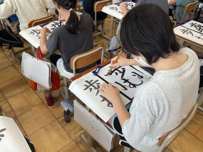 書写の学習では、用紙に対する文字の大きさと配列に気をつけて「歩む」を書きました。