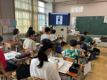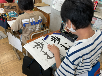 書写の時間には、文字の大きさと配列を考えて「歩む」の文字を書きました。