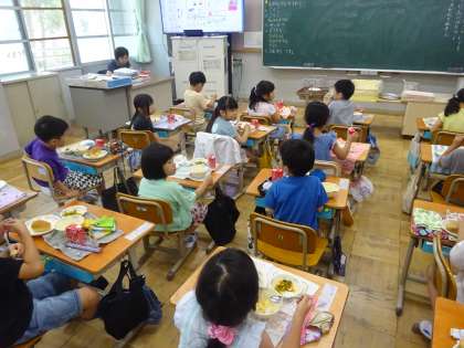 今日のシチューには、コーンがたっぷりと入っていました。手作りのまろやかなルーとプチプチとした食感が楽しめます。とうもろこしは、夏が旬です。新町小学校の運動場にある畑にもコーンが育てられています。「昼休みにコーンを見に行ってみる!」と言っていた子もいました。給食に出てくる食材からも旬の野菜について知っていって欲しいと思います。