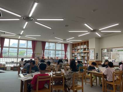 6年 国語「私と本」 公開日 2025/07/04 更新日 2025/07/04 6年生のページ ブックトークのために、おすすめの本を図書館へ探しに行きました。いつも読書をあまりしない人も真剣に読んでいる姿が見られました。