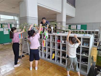おひさま七夕プロジェクト2025 公開日 2025/07/04 更新日 2025/07/04 おひさま学級 今年も全校の短冊を集め、管理用務員さんと協力して、七夕の笹飾りを玄関に取り付けることができました。 みんなの願いが叶いますように。子どもたちもみんな願っていました。