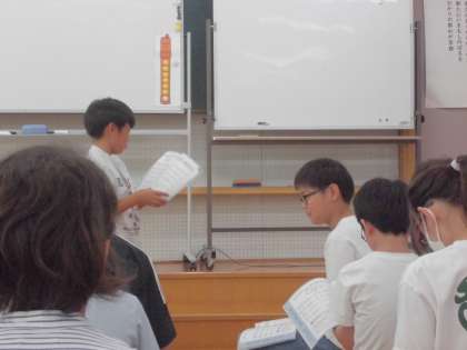 音楽で歌のテストをしました。「星の世界」を気持ちをこめて、クラスのみんなの前で歌いました。