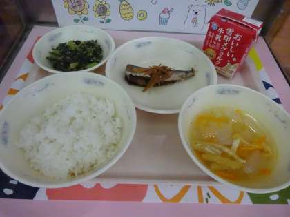 7月4日(金)の給食は、ごはん・牛乳・いわしのかわり煮・小松菜のごまいため・とうがんのくずひきでした。