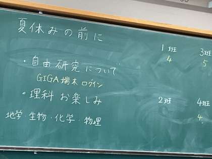 理科では、夏休み前最後の授業をしていました。6年生で学習した内容をもとにクイズを出していました。楽しく学習に取り組めました。