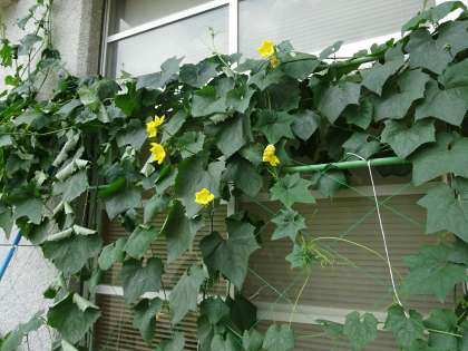 校長室、北側のヘチマの様子です。