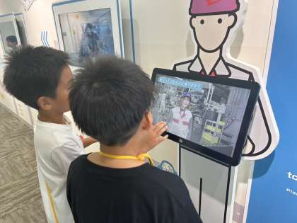 5年 社会見学 公開日 2025/07/16 更新日 2025/07/16 5年生のページ 検査の体験では、実際の車に乗り込んで見たり触ったりして調べることができました。また、工場でインタビュー動画で働く人の思いも調べていました。