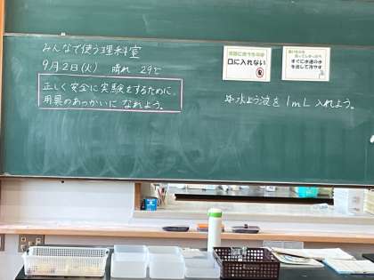 2学期の理科の学習が始まりました。今日は「みんなで使う理科室」の学習をしました。これから始まる実験の用具の使い方をしっかり頭に入れました。