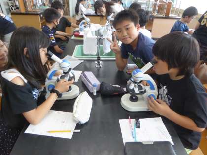 5年生 理科〜花から実へ〜 公開日 2025/09/08 更新日 2025/09/08 5年生のページ 顕微鏡を使い花粉を見ています。ヘチマやアサガオなど、植物によって花粉にも違いがあることが分かりました。