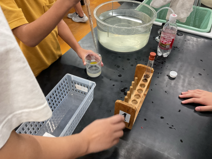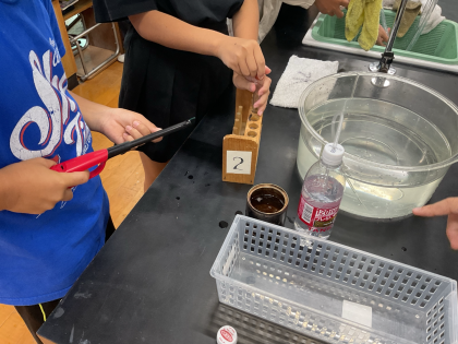 炭酸水に溶けているものを予想して、班ごとに実験方法を選択して学習しました。