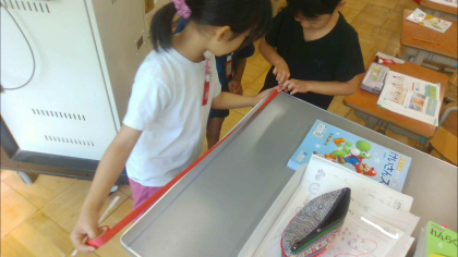 算数「おおきさくらべ」の学習の様子です。