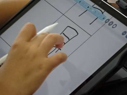 同じ字数、行数の原稿用紙ですが、子どもたちが自分の使いやすい大きさにピンチアウト、ピンチインして書いていました。タブレットに書くという行為には賛否があると思います。