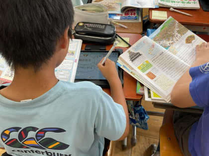 社会では「戦国の世から天下統一へ」の学習をしています。今日は、織田信長について調べ、天下統一にむけてしたことをまとめました。