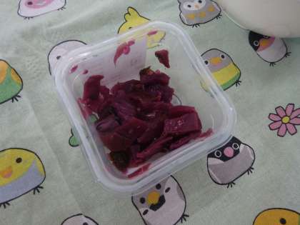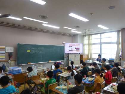 しば漬は、京都市左京区の大原で生まれた京都の三大つけものの一つです。給食のしば漬は、大原でとれた赤じそ・京都でとれたなす・塩を使い、昔と同じ作り方で作られています。子ども達は、「すっぱい!」と言いながら、ご飯と一緒に食べていました。
