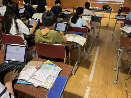 社会では、「江戸幕府と政治の安定」の学習に入りました。今日はひまわりホールで学習しました。いつもとは違った環境でしたが、教室と同じようにグループで交流したり、発表したりしてしっかり学習することができました。