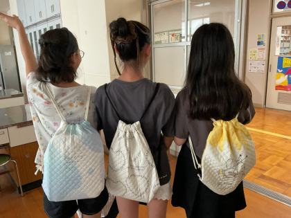 6年生 家庭科〜思いを形にして生活を豊かに〜 公開日 2025/10/06 更新日 2025/10/06 6年生のページ ナップザック作りの最後の時間でした。完成したナップザックをみてとても喜んでいました。自分で作ったナップザック、たくさん使ってください!