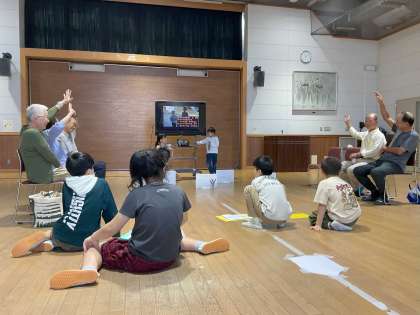 新町小学校の様子をクイズを交えて紹介したり、ボールを使ったレクリエーションをしたりして、地域の方と楽しむことができました。