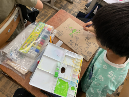3年生 図画工作科「トントンどんどんくぎうって」 公開日 2025/10/07 更新日 2025/10/07 3年生のページ 図画工作科の学習では、釘を打つ前に板に絵を描いたり、色を塗ったりしています。良い作品ができるように丁寧に塗ることができました。