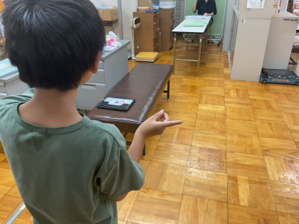 保健室で視力検査を行いました。3年生にもなると、スムーズに行うことができました。