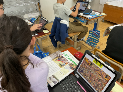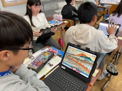 社会では、「町人の文化と新しい学問」の学習をしています。今日は、歌舞伎や浮世絵が人々の間でどのように親しまれていったのかについて調べました。