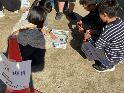 理科の学習では、運動場で太陽とかげの関係について学習しました。子どもたちは、「朝と昼で太陽に位置が変わっている」「かげの位置も朝とは違うよ」などたくさんの気づきを呟いている様子でした。