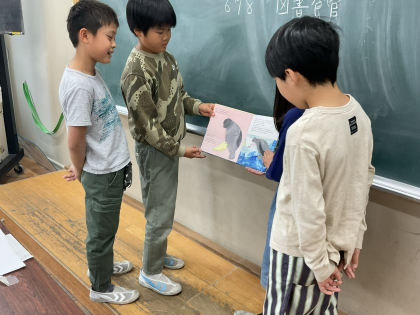 1年生に班で話し合って決めた本の読み聞かせを行いました。子どもたちは緊張しながらも、練習したことを生かして、落ち着いて読むことができました。1年生は感想で「3年生になったら読み聞かせをしてみたい」「楽しかった」など、発表しました。