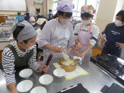 5年生 家庭科〜食べて元気!ご飯とみそしる〜 公開日 2025/10/24 更新日 2025/10/24 5年生のページ ご飯はどのようにして炊きあがっているのだろうか。透明な鍋を使うことで中の様子が分かりました。みんな興味をもってみていました。