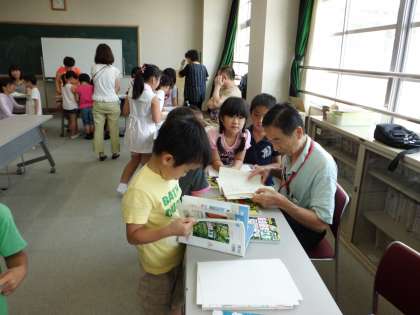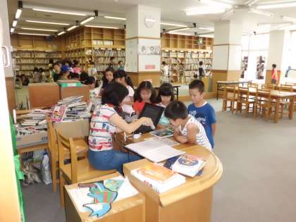 チャレンジ教室 図書室開放 公開日 2012/07/25 更新日 2012/07/25 学校の様子 教室でのサマースクールと並行して,図書室で本を借りたり,ミーティングルームで自由研究の相談をしたりする子どももいます。 ミーティングルームでは今までの素敵な作品を保存してあってそれを見ることもできます。自分で追究したいテーマを決めてどういうふうに進めていくかなどを真剣に考えている様子でした。 図書室でも2冊借りられるので自由に選んだり,読んだりして楽しんでいました。