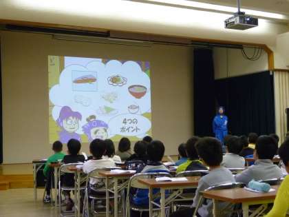 11月29日(木)府立大学と新町小学校と連携し,食育の学習がありました。4年生の子どもたちは,これまで火について一緒に学習し,今回は,府立大学へ行き,大学で授業をしてもらいました。