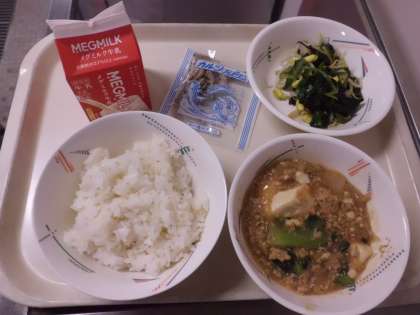 麦ご飯・マーボ豆腐・ほうれん草と大豆もやしの炒めナムル・じゃこ