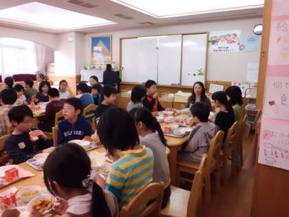 今日はカナダのトロントより給食参観に来られました。6年生とランチルームで給食を食べられました。6年生の子供たちと楽しく一緒に食べてもらえてよかったです。子ども達に給食についての質問をされたようです。(通訳の方も一緒に来られました。)