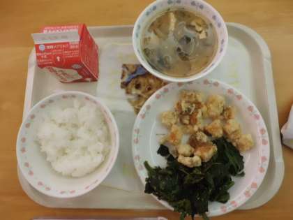 ごほん・牛乳・鱈のからあげ・ほうれん草のごま煮・みそ汁