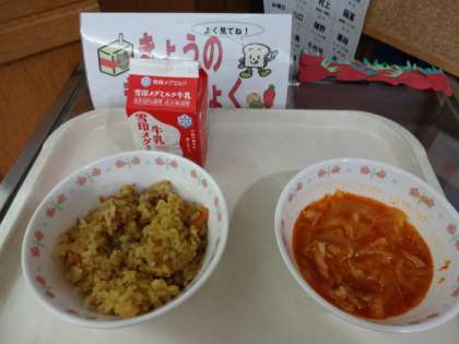 おかずが無い分,カレーピラフ・トマトスープがたっぷりとありましたが,ほとんどのクラスで完食でした。美味しかったです。