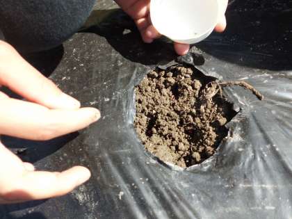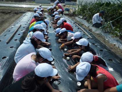 4年生は,大根を育てます。子どもたちが作業しやすいように,運営協議会のみなさんが様々な作業を手伝ってくださいました。ほっぺを押すぐらいの強さで穴をあけ,そこに種を蒔いて,優しく土をかぶせた子どもたちは,「立派な大根になあれ!」と気持ちを込めて,活動していました。その後,全員で雑草抜きもしました。これからの大根の成長が楽しみです。