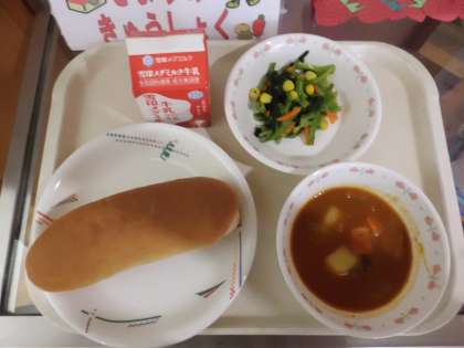 ミルクコッぺパン・牛乳・トマトシチュー・小松菜のソテー・チーズ