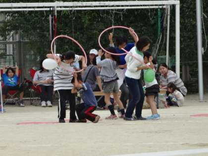 親子種目でも大活躍! 風船割がこわかった!!