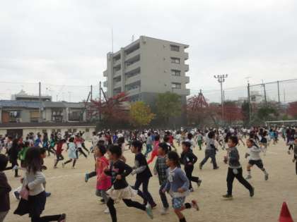先週金曜日から,業間体育が始まりました。各学年,体育の学習で,今月末から始まる「持久走大会」に向けて,「かけあし」や「持久走」に取り組んでいます。